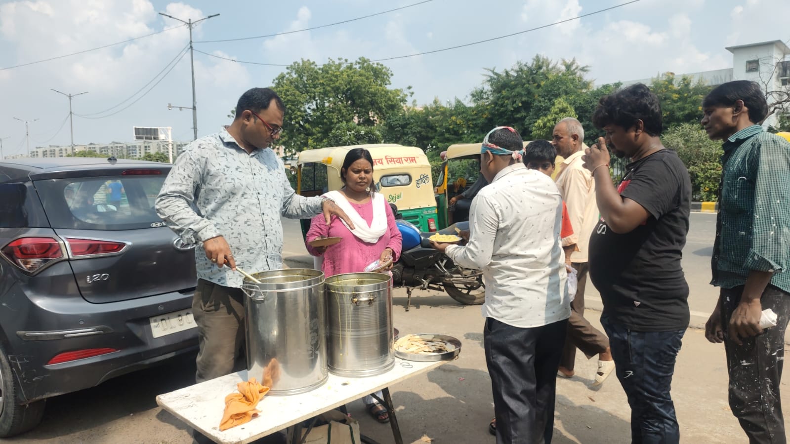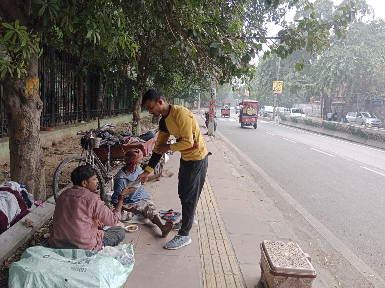 Roadside Homeless Meal Distribution